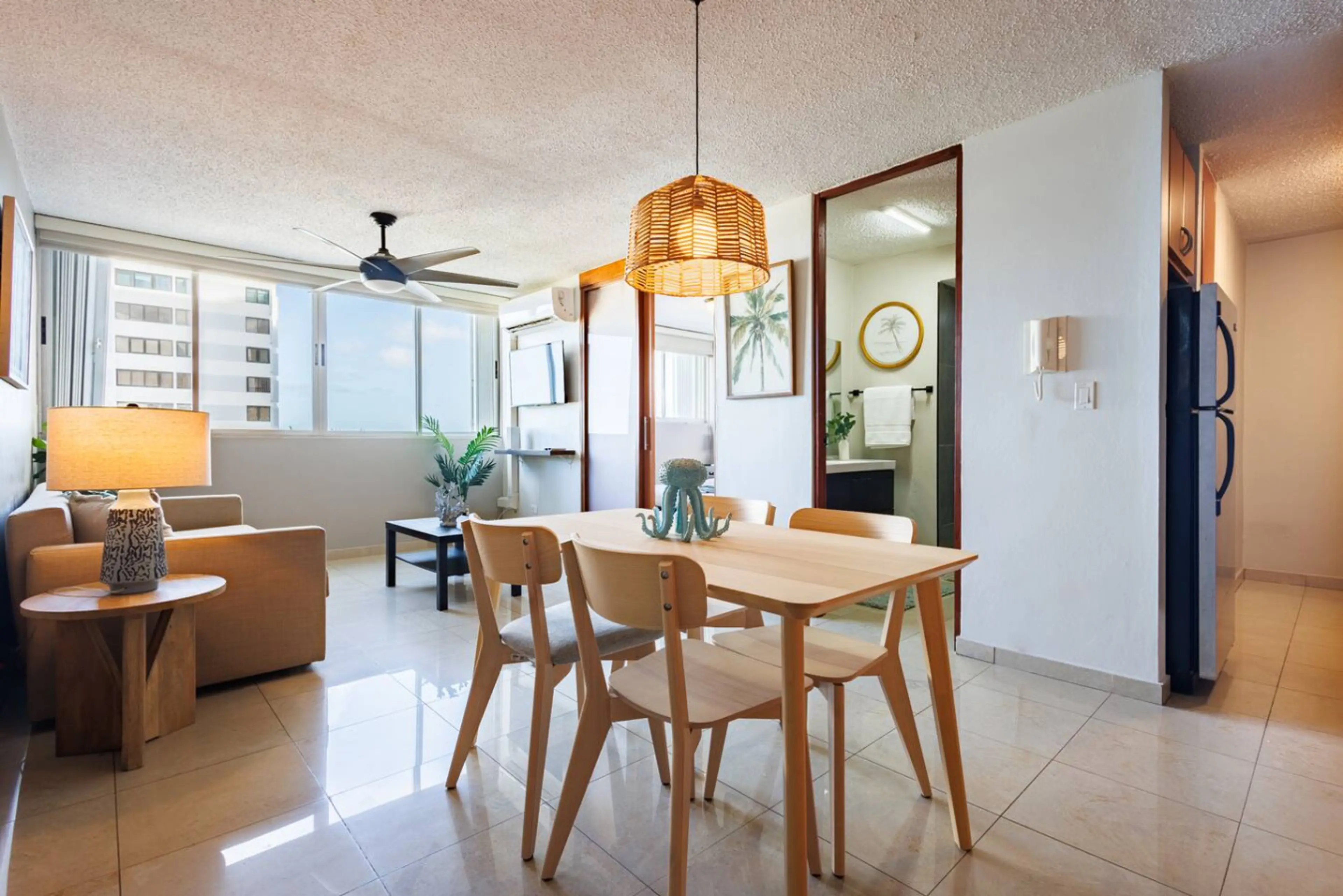 Welcome to our tropical oasis in the heart of Condado! This stylish one-bedroom apartment blends beachy charm with modern comfort, offering a cozy retreat just steps from Condado Beach. Enjoy a fully equipped kitchen, a serene living area with a Smart TV, and a plush queen-sized bed for restful nigh...
