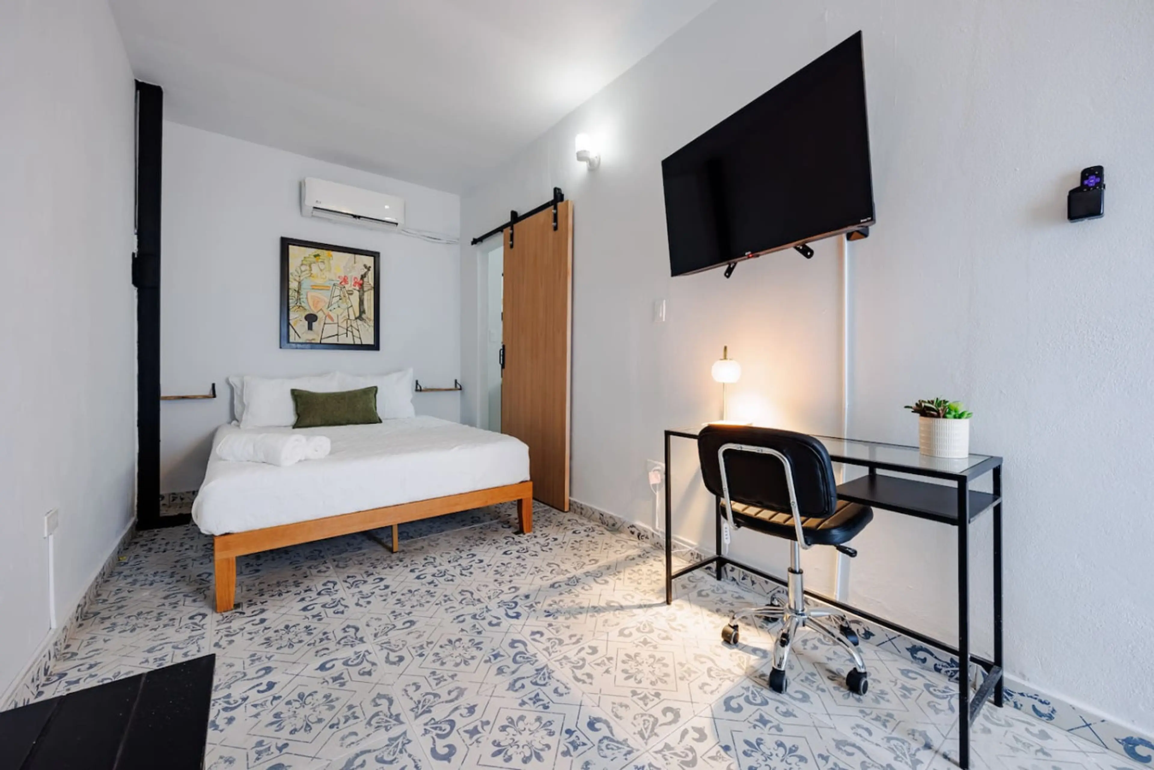 Welcome to your tropical hideaway in the heart of San Juan. This bedroom blends relaxed island style with modern comfort, featuring a queen bed, A/C, smart TV, and a coffee station. Located on Calle San Agustín, you’re perfectly positioned between Condado’s beaches and the charm of Old San Juan. Enj...