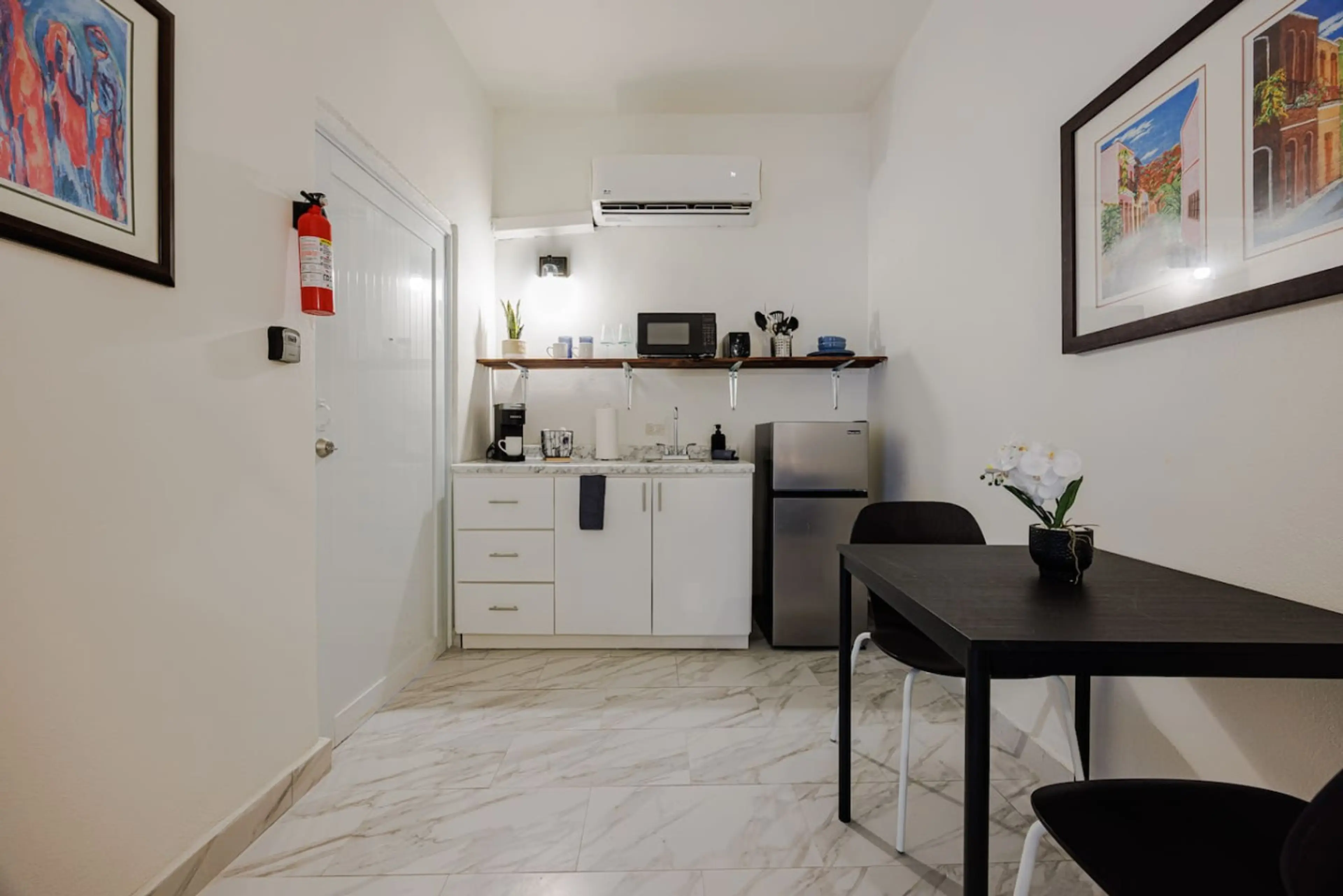 Relax in this sleek, modern studio perfectly set between Old San Juan and Condado. Enjoy a comfy queen bed, and a fully equipped kitchenette ideal for short visits or longer stays. Benefit from free street parking, keyless access, and easy check-in. Just minutes from beaches, cafés, and historic lan...